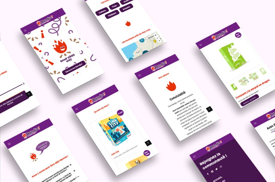 Le site web Bandjo! est le fruit d’un travail d’équipe visant à créer une plateforme numérique pour le lancement d’un nouveau projet : l’accueil d’un éditeur de jeux au sein d’une entreprise. À cette occasion, une nouvelle identité a été imaginée, accompagnée d’un changement de nom, et le site web a été identifié comme l’un des défis majeurs à relever. Nous avons préalablement élaboré des maquettes sur Figma, que nous avons ensuite validées pour se consacrer plusieurs semaines à la concrétisation de ce projet en utilisant l’éditeur WordPress. Le résultat final est un site web frais et positif, à l’image de cette nouvelle identité signée « Good vibes only » !